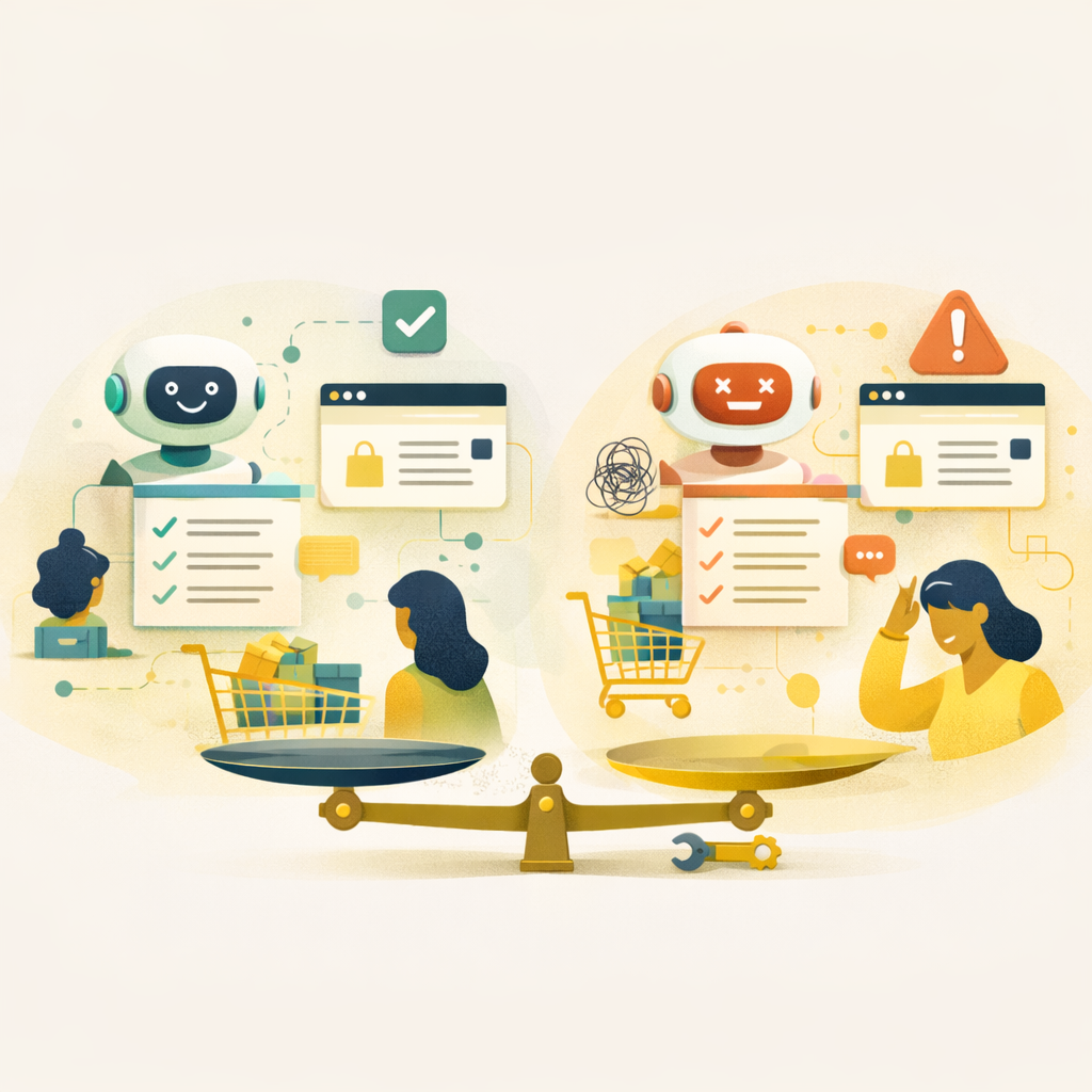Chatboty oparte na AI (jak modele GPT) rozumieją swobodne pytania i potrafią prowadzić bardziej naturalną rozmowę. Są jednak droższe, wymagają starannego przygotowania danych i regularnego monitorowania, żeby nie dawały błędnych odpowiedzi. W e-commerce błędna informacja o cenie, dostępności lub warunkach zwrotu może kosztować utratę zaufania klienta.